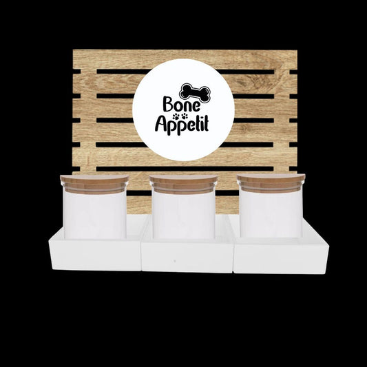 White Dog Treat Jar Bar w/ Bamboo Canisters