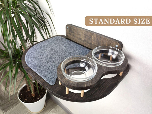 Wall Mounted Cat Feeder: Elevated Shelf with Glass Bowls
