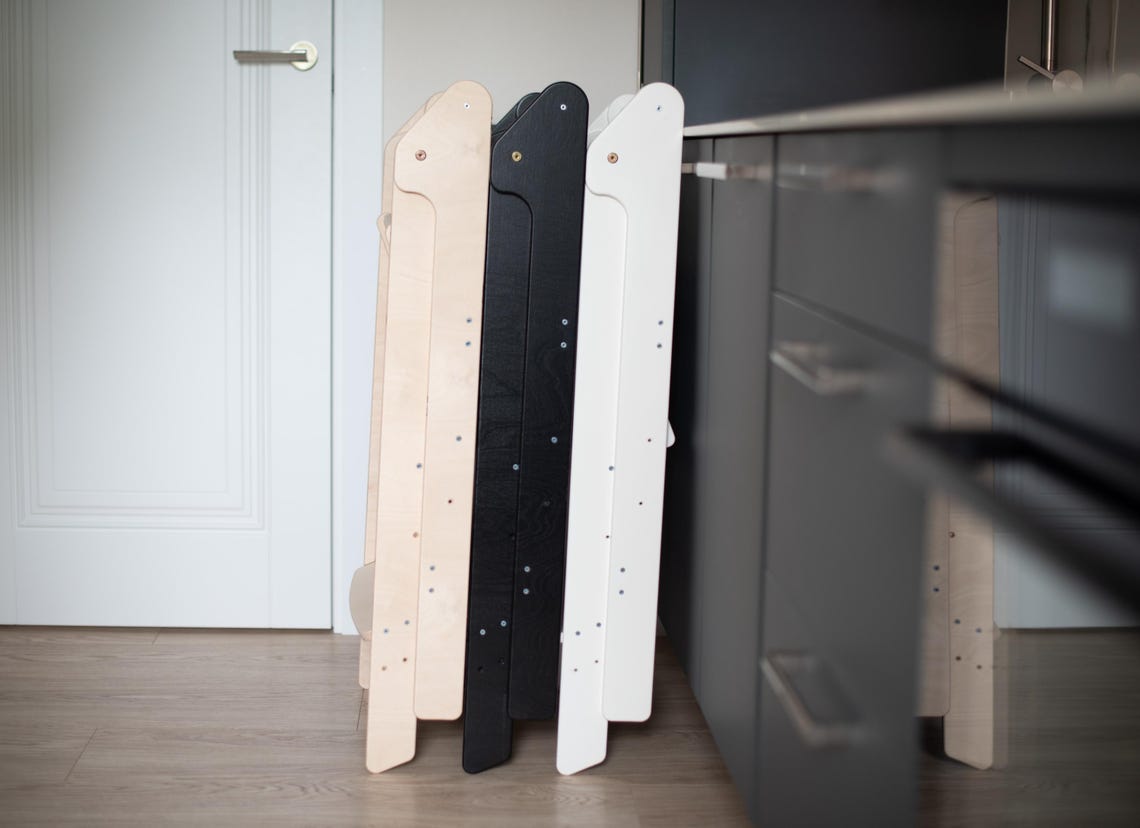 Inspired by Montessori principles and designed with little chefs in mind, this kitchen tower provides a sturdy platform for your budding cooking enthusiast. Crafted from high-quality, eco-friendly wood, our kitchen tower not only elevates your child's kitchen experience but also adds a touch of warmth to your kitchen space. Our Space-Saving Wooden Kitchen Tower – the folding helper that seamlessly combines functionality, safety, and practicality. Order now and let the kitchen adventures begin.